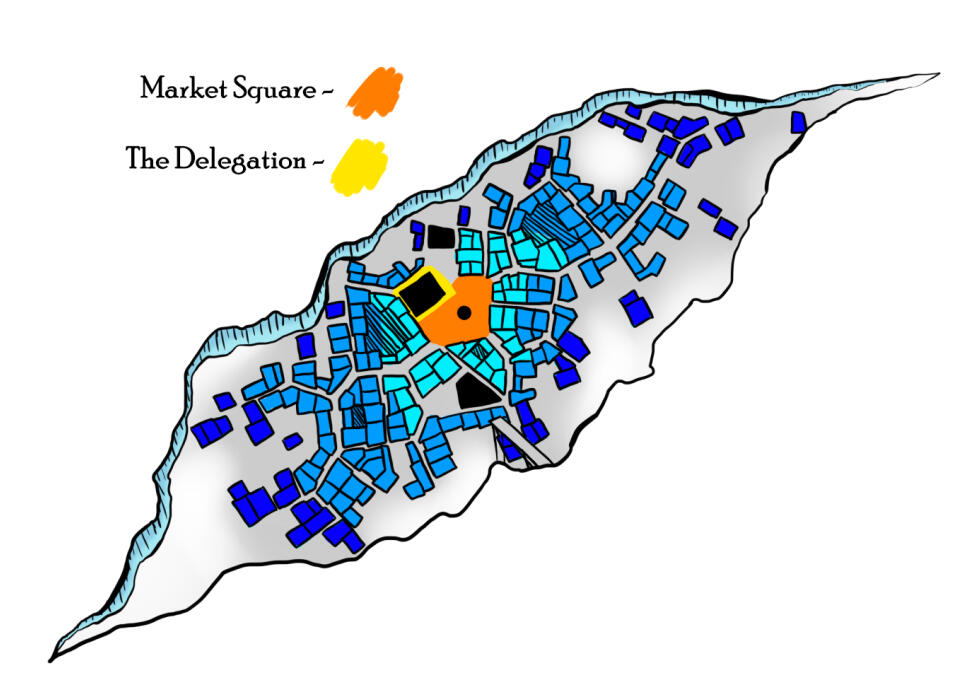 Set close to the generator is a large square of stone paved road where few booths sit and during down time merchants offer their goods. This of course means typically these stalls are open at night due to most civilians working long hour day jobs.The Delegation -